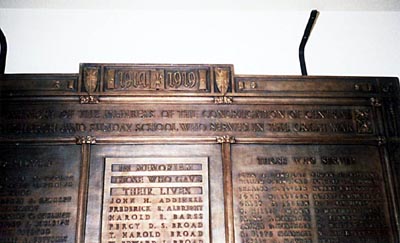 Central Methodist Church Congregation and Sunday School Memorial Plaque