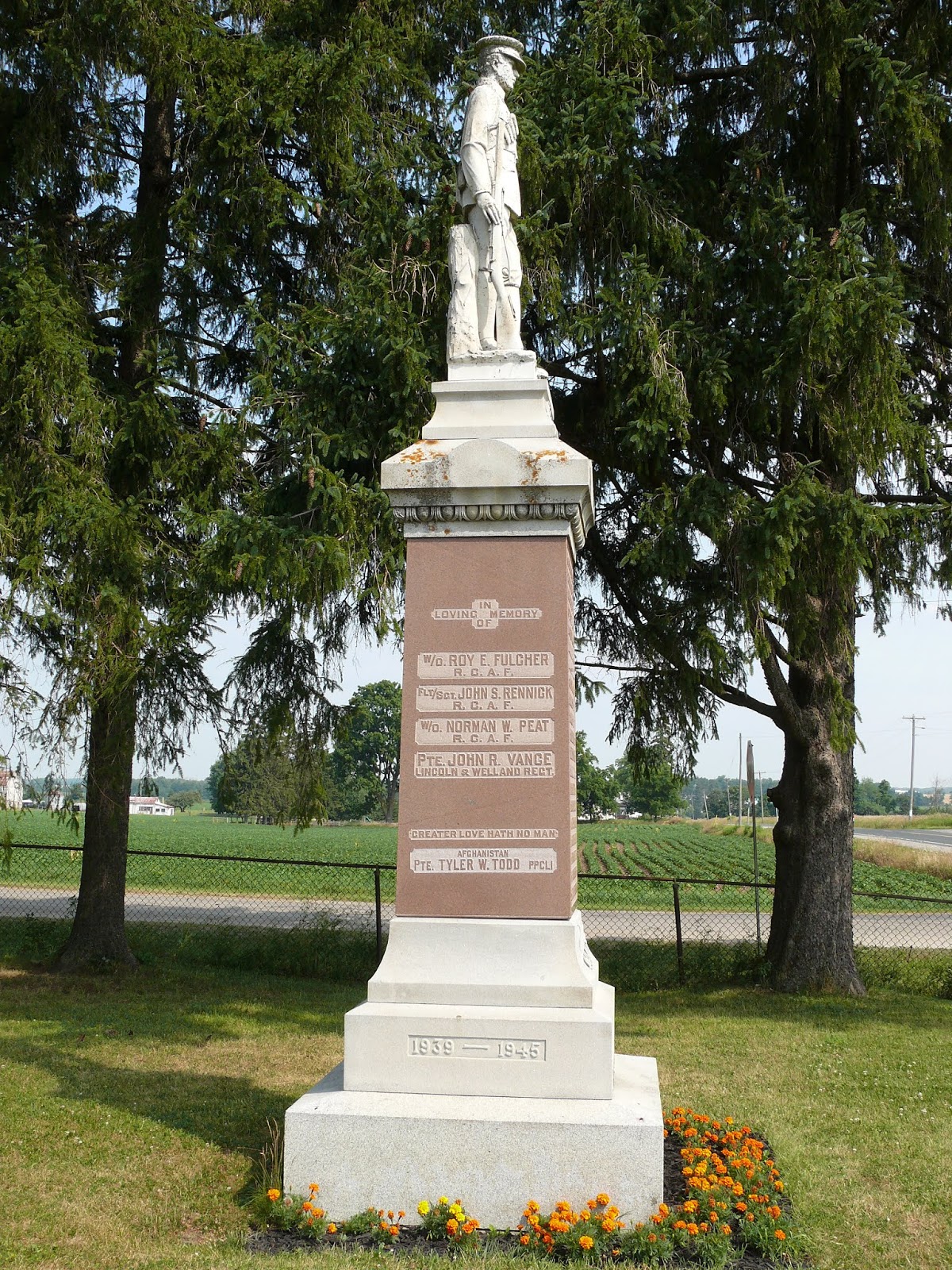 The memorial included the names of those that were killed during the First World War. Later additions were made for those killed during the Second World War and Private Tyler W. Todd, who was killed while serving in Afghanistan.