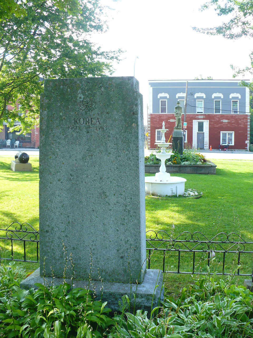 In the mid 1990’s, Korea was added to the back of the cenotaph by the local branch of the Royal Canadian Legion.