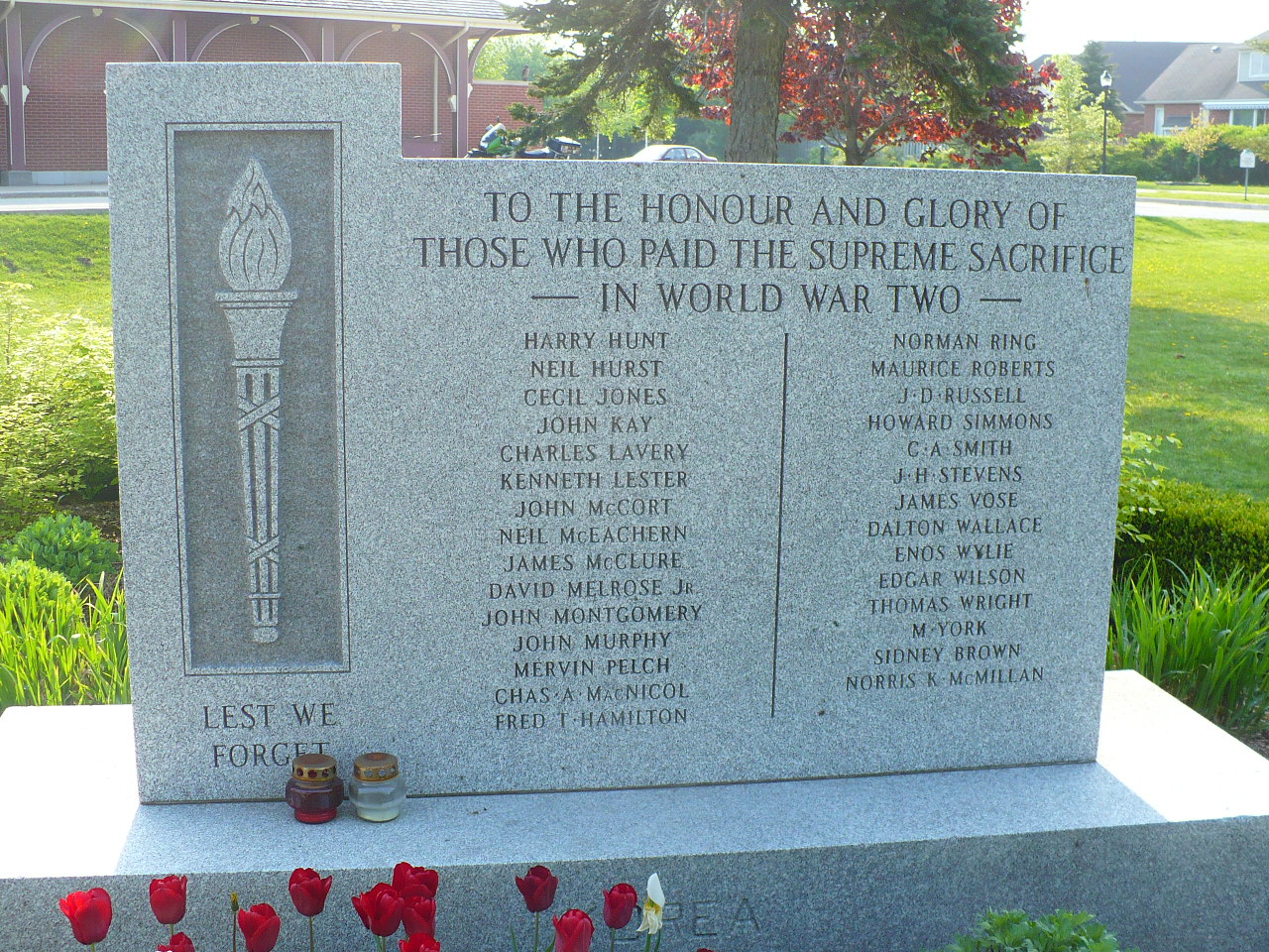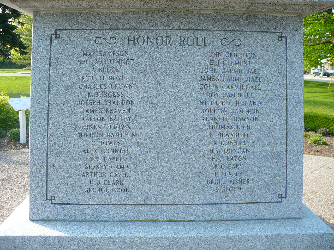 The Collingwood Cenotaph is an important symbol of community pride and provides a focus for a number of ceremonies throughout the year, including Remembrance Day. Maintenance and upkeep of the Cenotaph are shared by the Town of Collingwood Department of Parks, Recreation and Culture, the Collingwood Horticultural Society and the Royal Canadian Legion Branch 63.