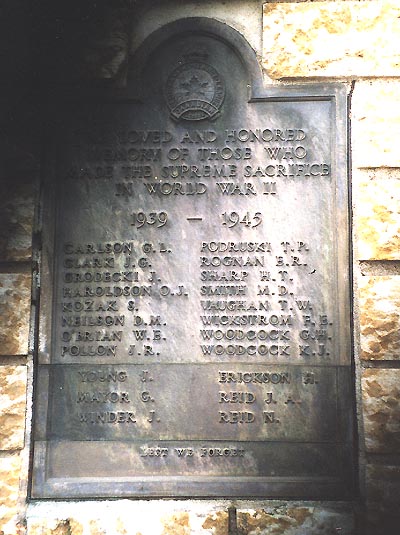 For many years, a memorial service was held in August or September at the site. In 1964, the Legion purchased the Scandia Hall on First Street and the former location was sold to Parkwood Auto. The cenotaph could not be moved so its plaque was removed and stored in the Legion Hall. In 1979, a new cenotaph was built at a cost of $1,600.