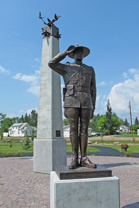 The Fallen Four Memorial recognizes the risks that peace officers take every day and in particular, honours the ultimate sacrifice of four young Royal Canadian Mounted Police officers who were killed in the line of duty on March 3, 2005, Constables Peter Schiemann, Leo Johnston, Brock Myrol and Anthony Gordon. It was unveiled on July 4, 2008, by the Maythorpe Fallen Four Memorial Society.