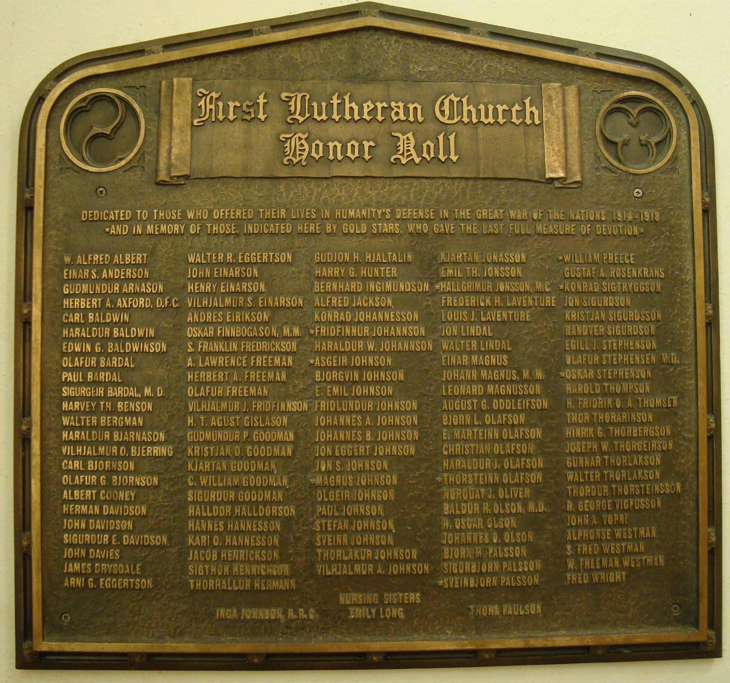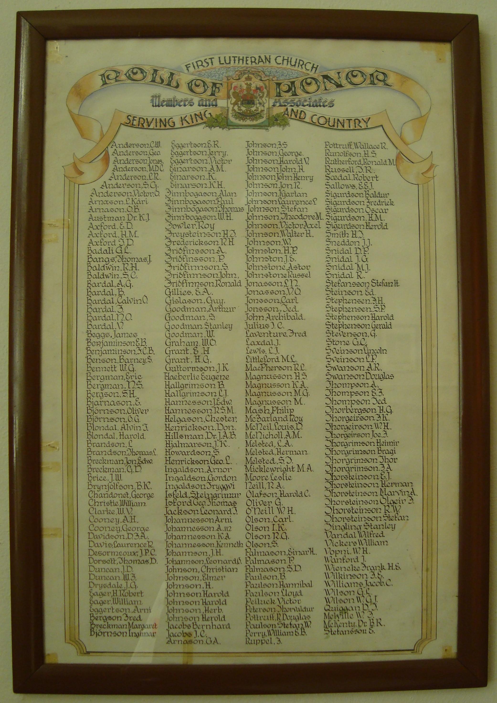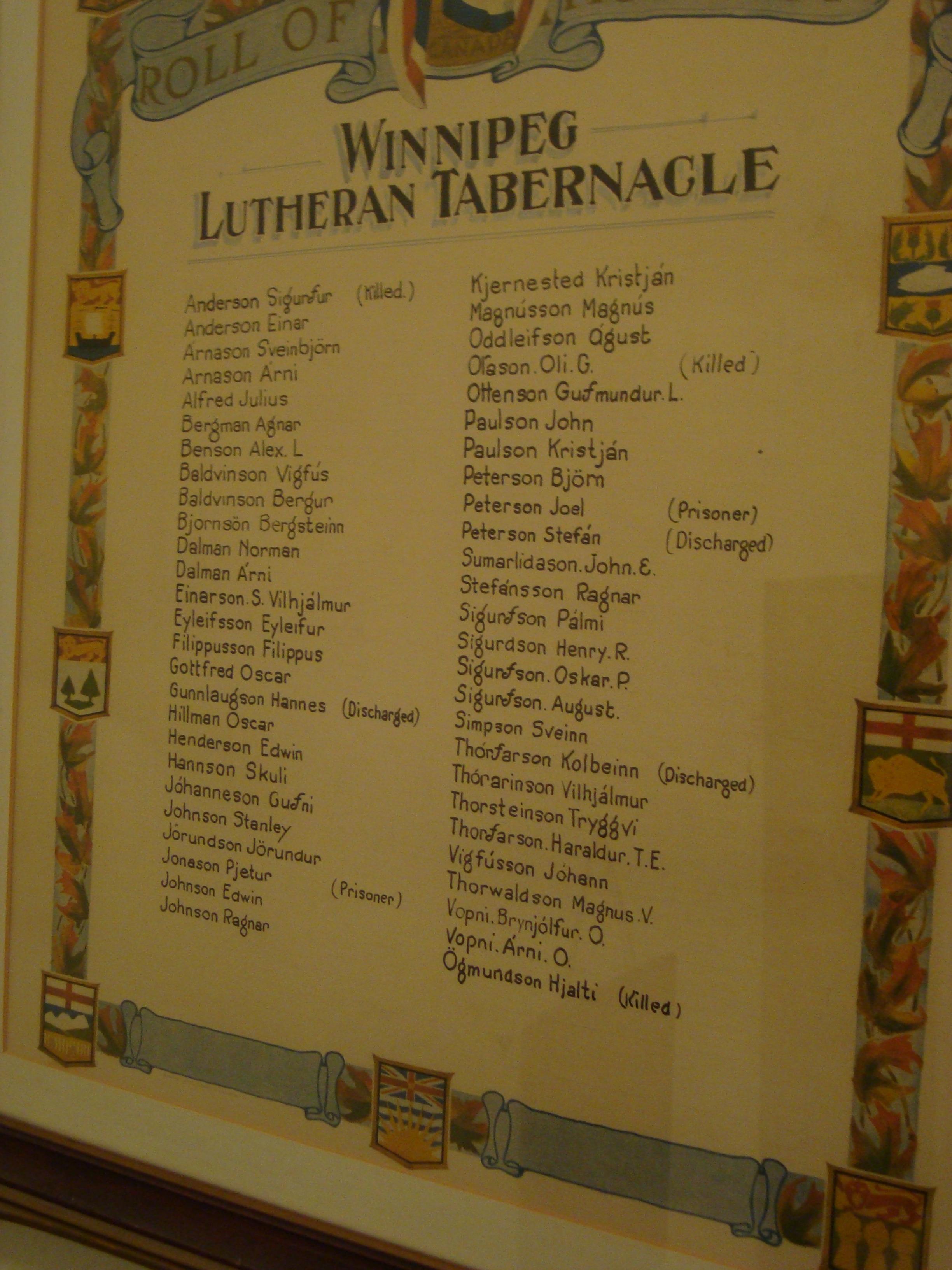 Winnipeg Lutheran Tabernacle WW1 Honour Roll