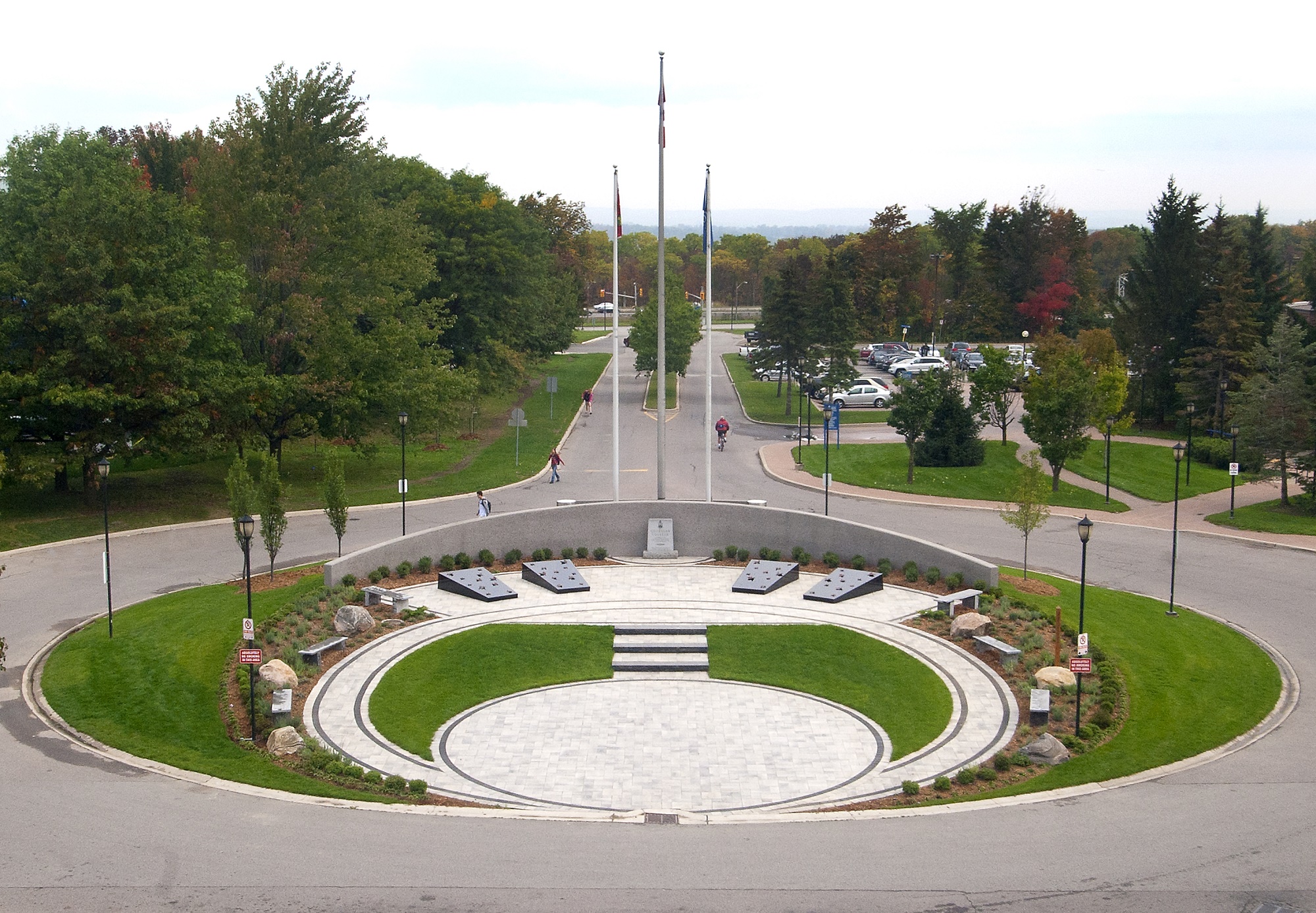 This plaque honours the sacrifices and contributions of First Nations, Métis and Inuit Veterans. Placing this plaque in the cenotaph area at Georgian College was a cooperative effort between the College, Indigenous community and the Veterans in the area. It was unveiled on November 11, 2011, as part of the first Remembrance day gathering at the new College cenotaph.