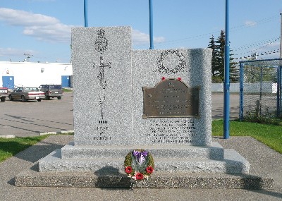 This memorial is dedicated to those who gave their lives in the First and Second World Wars and Korean War. It was erected by the Royal Canadian Legion Branch 102.