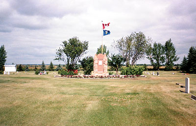In 1931, the Gadsby branch of the Royal Canadian Legion decided to erect a memorial in honour of the soldiers who lost their lives fighting for their country. Research has shown that Chris Kruger, Arthur Heffer and Boddy Collins were the driving forces behind the project. Mr. Reynolds Sr. who was a stone mason, and Jim Hilton constructed the stone memorial. The memorial would be located in the Gadsby Cemetery. The Royal Canadian Legion held a dedication service at the memorial on August 30, 1931. This was the first Legion Memorial Service held at the Gadsby Cemetery. The Gadsby branch of the Legion always held this service on the last Sunday of August, until they gave up their charter in 1963. The few Legion members who were left in the district then joined the Stettler branch. The Stettler branch still holds this Memorial Service, or "Decoration Day" as it is commonly known. Those who lost their lives in the Second World War and any other war in which Canadians have fought and died have been added to the services.