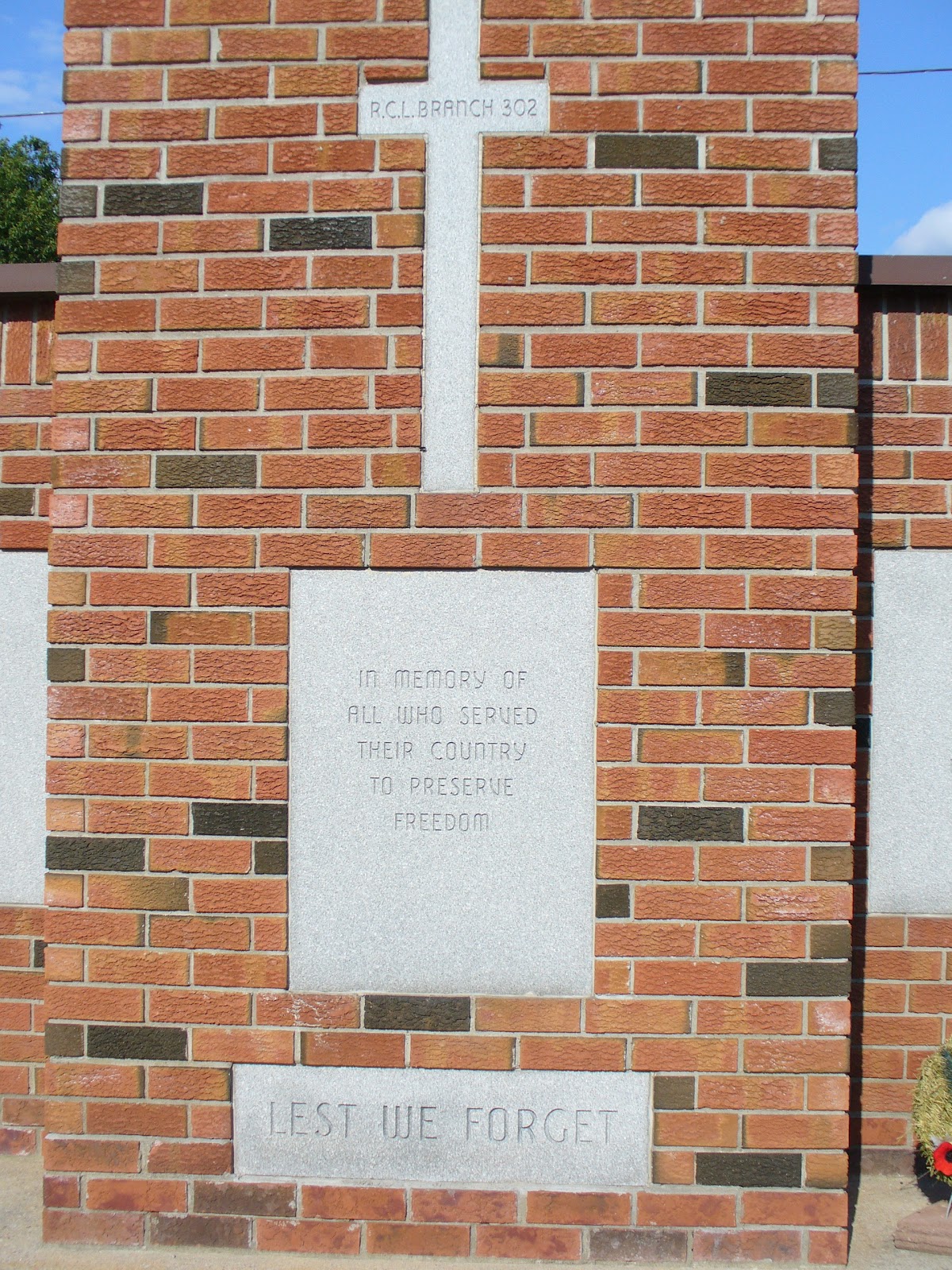 This memorial was constructed in 1987 in memory of those lost in the First and Second World Wars, the Boer War, and the Korean War.