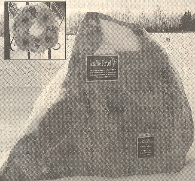 This memorial was placed there in the summer of 2006 by the family of Ted Leake, a veteran of both the First and Second World Wars. It is dedicated to all the veterans buried in the Hazel Bluff Cemetery.