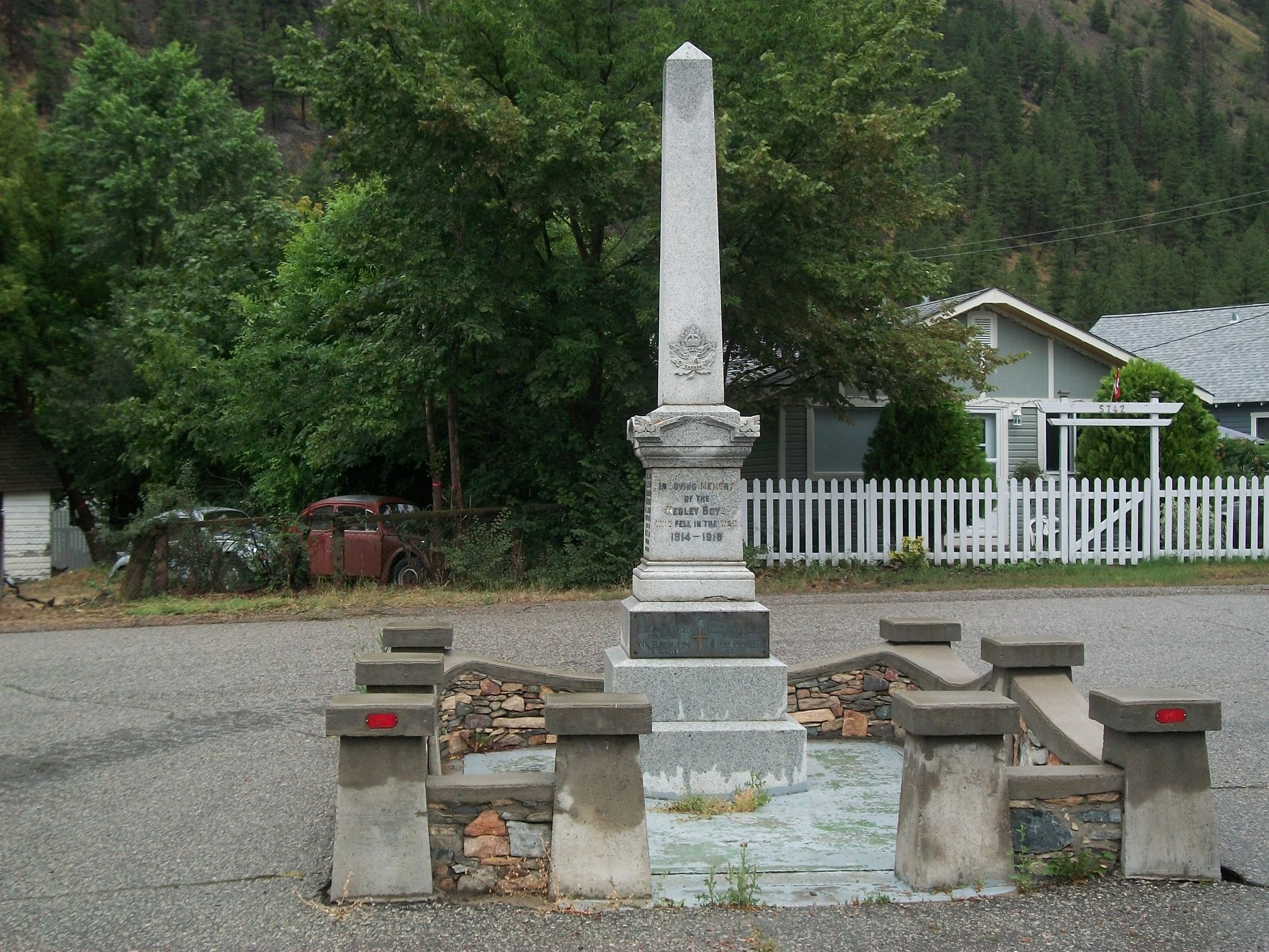 The Hedley Cenotaph was built between August and December 1919 and unveiled on December 14, 1919. The local newspaper reported intentions to mount machine guns with the cenotaph, but this never happened. The town of Hedley gave much during the First World War in terms of time, money and lives. The Hedley women knitted socks and other comforts for the men at the front and the work force as a whole, at both the mine and the stamp mill, contributed weekly into a Patriotic Fund that provided additional income for the troops and their dependents. By the war’s end so many Hedley men had been killed or wounded and the money grew into a significant sum. The money was distributed to the surviving Veterans and $1,000 set aside to build a monument to the fallen. A war monument committee was formed, chaired by Lieutenant Tom Knowles, with Captain Alec Jack and Private Joe Rotherham, all from the 54th Kootenay Battalion and part of a group of 17 men who volunteered together from Hedley in August of 1915.