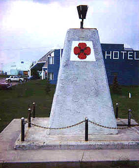 This memorial was erected in 1967 by members of Royal Canadian Legion Branch No. 93. A colour image of a poppy is found on each of the north and south faces and a maple leaf on the west face of the cairn.