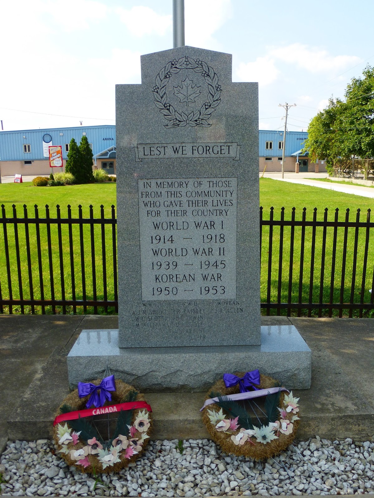 This memorial to the local Veterans of the First and Second World Wars and the Korean War was erected by the Royal Canadian Legion.