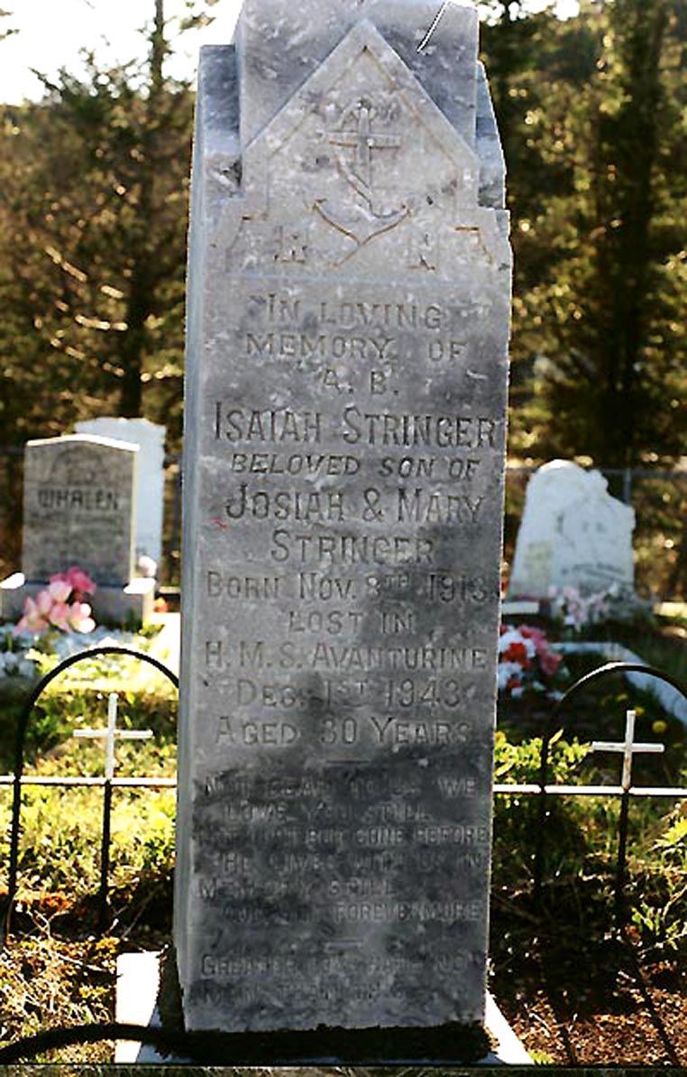 Erected by the Stringer family, this memorial is dedicated to Isaiah Stringer who died as a sailor aboard H.M.S. Avanturine on 1 December 1943.