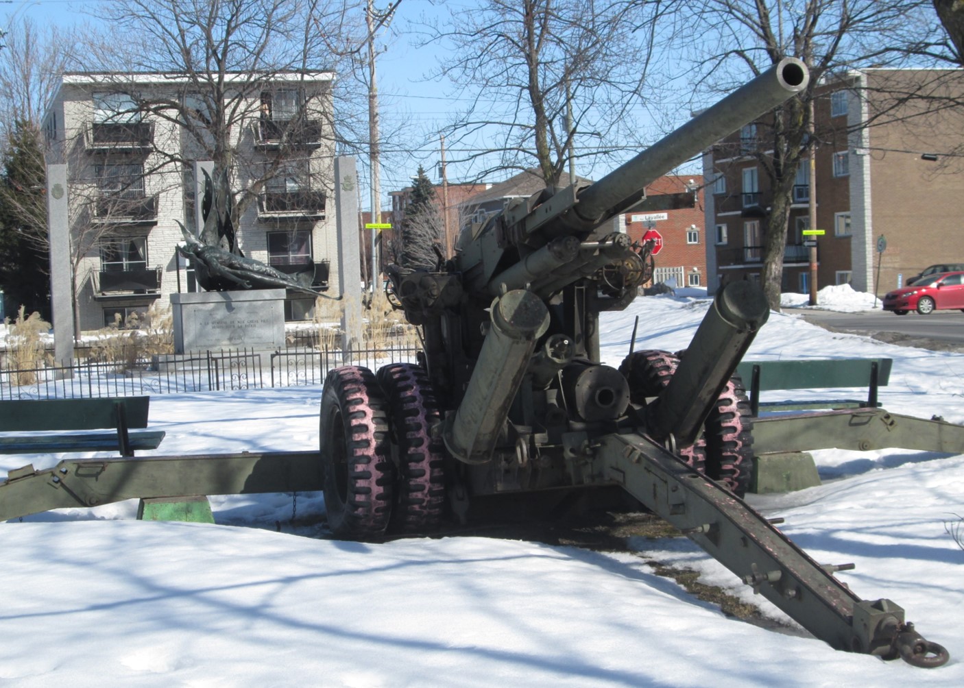 This monument, erected by the town of Jacques-Cartier in 1966, is dedicated to the local citizens who died during the two Great World Wars. The town of Jacques-Cartier was annexed to Longueuil in 1974.