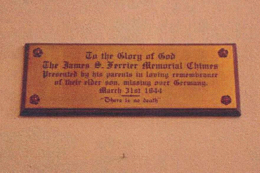 On October 27, 1947, the chimes were installed in the church pipe organ as a gift from Dr. Gordon Ferrier and Mrs. Ferrier in memory of their son. The chimes were dedicated by Rev. William Fingland, DD, of Niagara Falls.