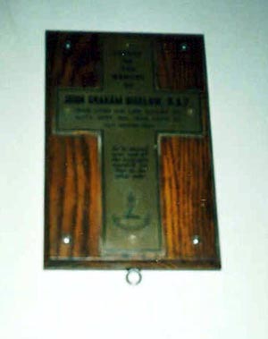 This plaque is dedicated to the memory of John Graham Biglow, a member of the Royal Air Force who was killed in action on 3 September 1943.