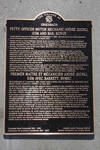 Juchli Avenue was dedicated to André Juchli (1923-2006) by the Canada Lands Company on August 25, 2010, as part of their redevelopment of Edmonton’s former Canadian Forces Base (Griesbach Barracks).