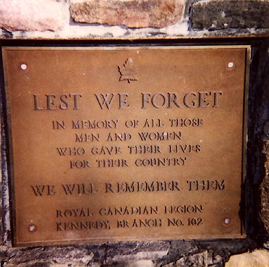 Erected by Royal Canadian Legion Branch No. 102, this memorial is dedicated to all Canadian war dead.