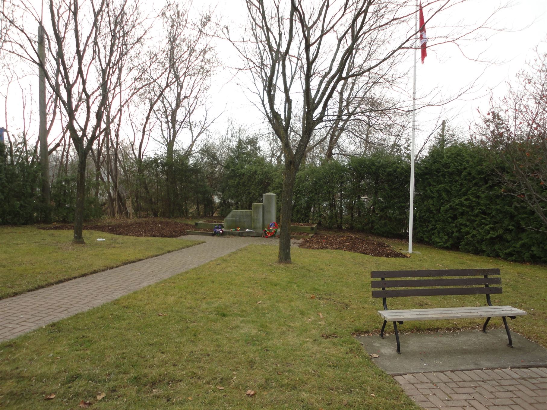 The Keswick cenotaph was relocated in 2017 from its former site at the intersection of Church Street and The Queensway, to its current site in front of the Stephen Leacock Theatre on Glendolyn Avenue.