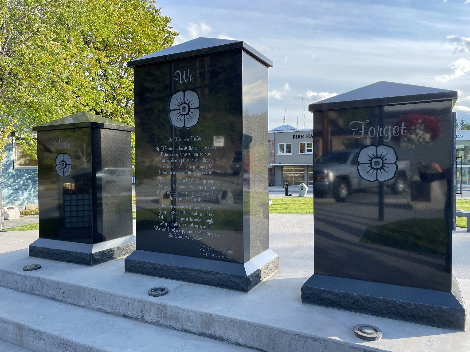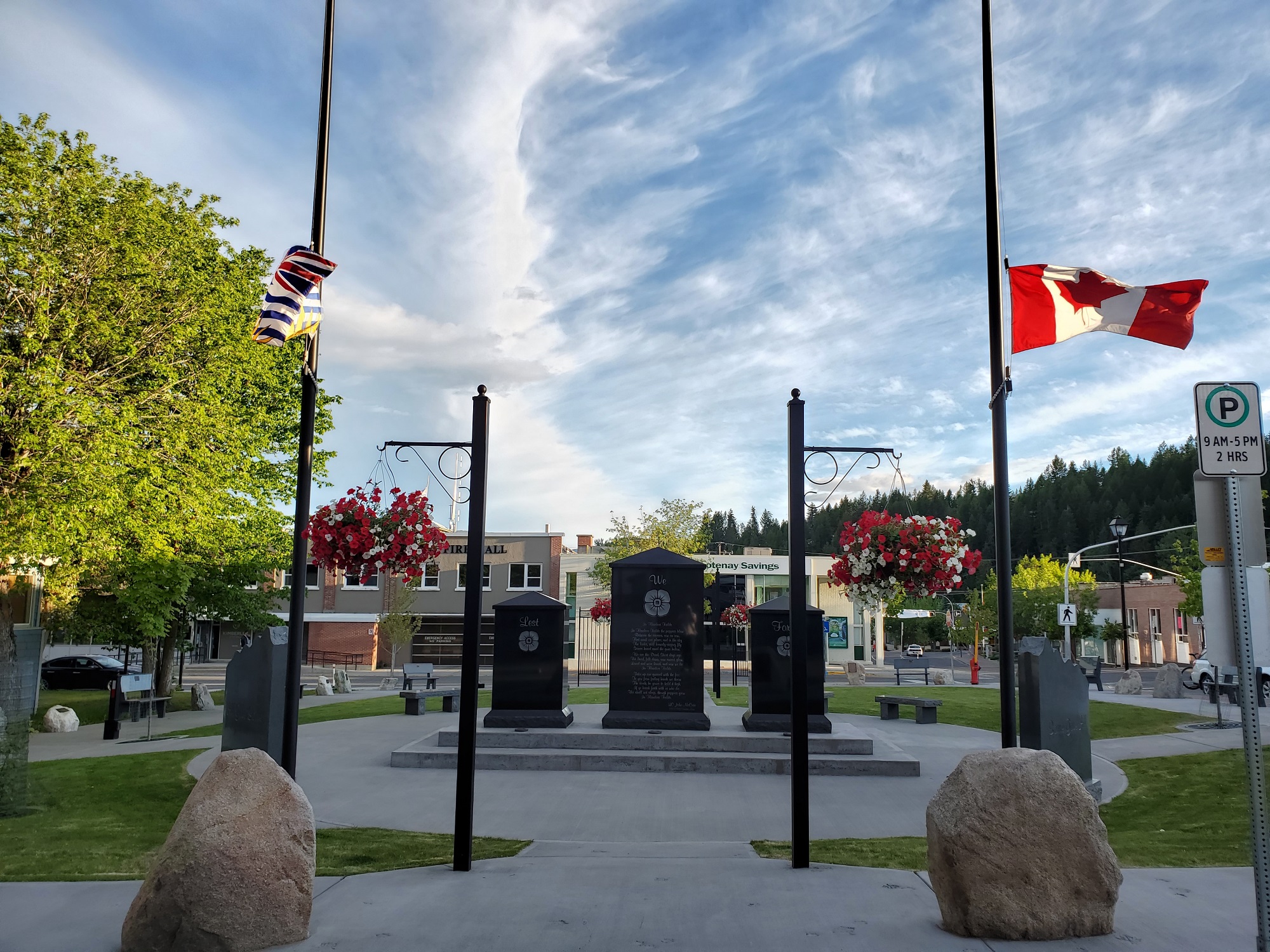 The Kimberley Cenotaph and Kimberley Veteran Memorial Park were unveiled on July 8, 2017. A Veterans group, Military Ames, realized the old cenotaph was in need of being replaced, as it was crumbling and had moss growing on it. They approached the City of Kimberley about a vacant lot downtown, presented their plans for a Memorial Park and cenotaph, and the City dedicated the land to them. Military Ames received several grants and assistance, including from Kimberley District Heritage Society, to construct the Park. The memorial commemorates Canada’s World Wars participation, peacekeeping efforts and Canada’s Vietnam War Veterans.