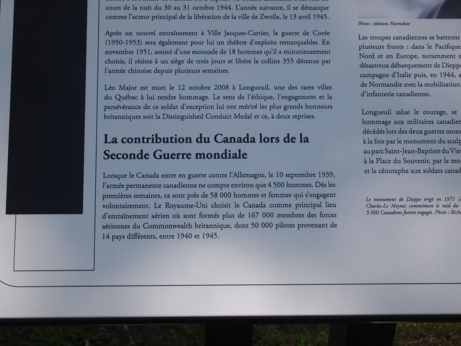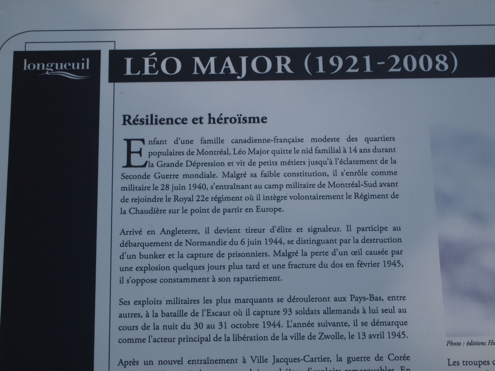 Formerly Souvenir Park, this park has been known as Léo-Major Park since 2018. An educational plaque with Private Leo Major's biography and Canada's contribution during the Second World War is located in the park.