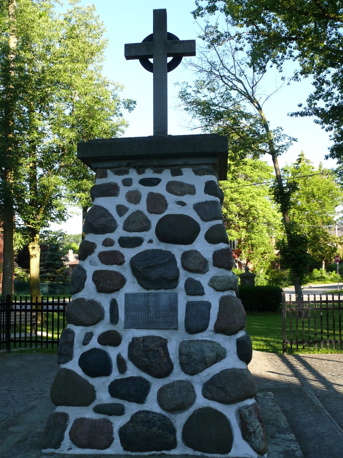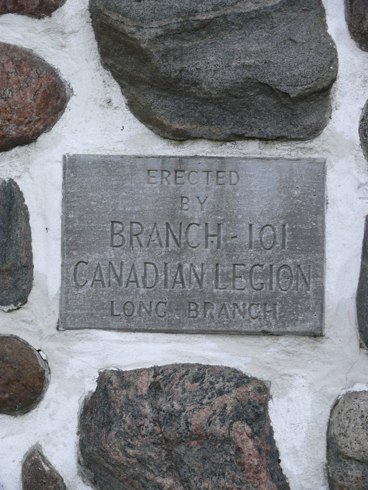 The Long Branch Cenotaph stands in a small park on Long Branch Avenue, south of Lakeshore Blvd. The Wright Family, extensive land owners in the community, donated this small parcel of land to the Village of Long Branch to be held in perpetuity. It was also indicated at that time that a cenotaph was to be erected on the site. The Cenotaph was constructed in 1933 by Royal Canadian Legion Branch 101 members and Long Branch residents. Local merchants donated materials. The Village of Long Branch was amalgamated by the Borough of Etobicoke and records show that in 1972 the Cenotaph was placed under the care and control of the Royal Canadian Legion Branch 101. Bruce Robertson, veteran of the R.C.A.F., Past President of the Royal Canadian Legion Branch 101 and Life Member was the custodian in 1997. The Cenotaph stands in memory of those who gave their lives in the First and Second World Wars and the Korean War. The little park and Cenotaph received a face lift with restoration work done on the Cenotaph and a new pathway of paving stone. This was jointly funded by the Borough of Etobicoke and the Royal Canadian Legion Branch 101. Memorial Services are held there annually on the appropriate occasions. November 11th, Remembrance Day, draws the largest crowd with the community, cadets, and school children participating.