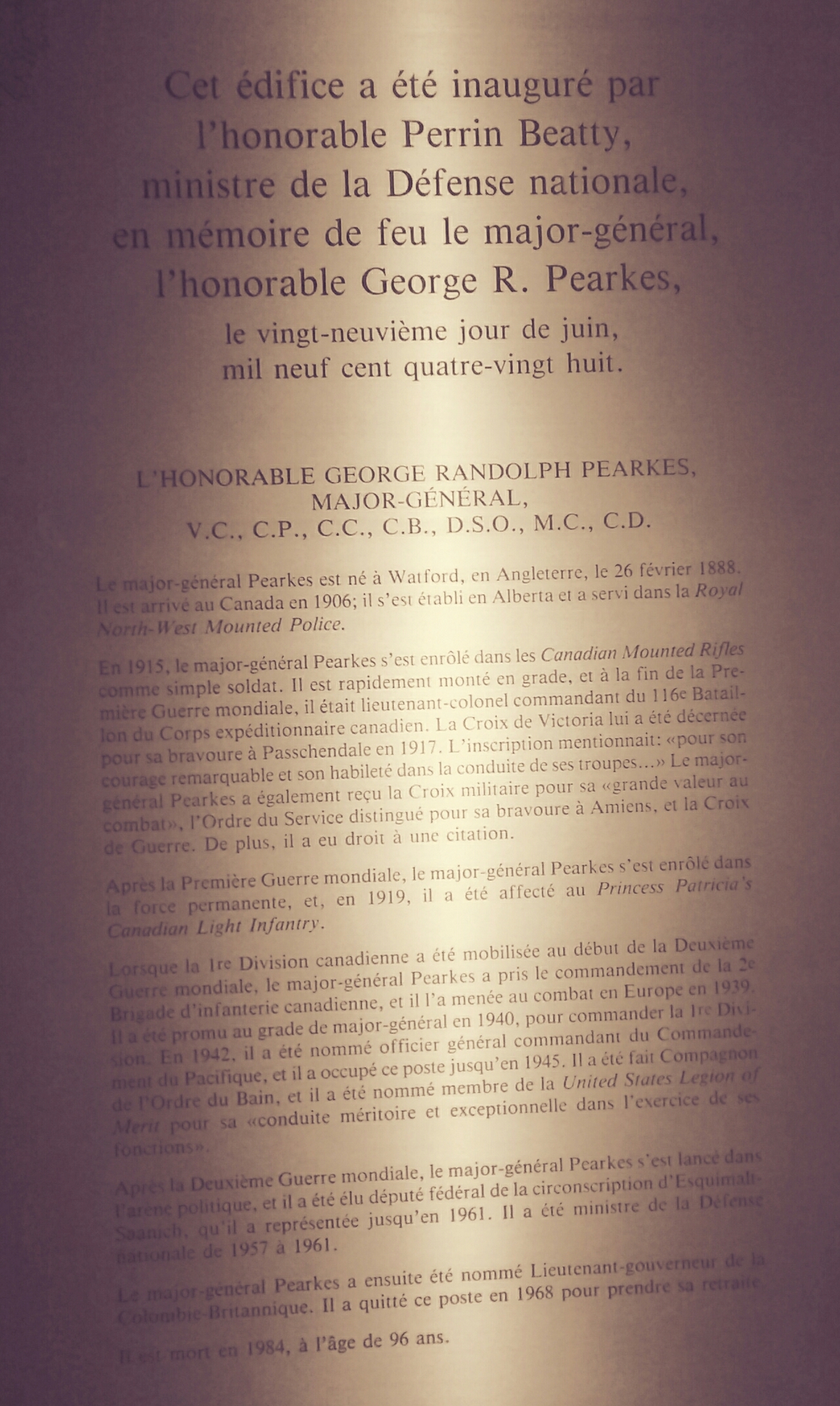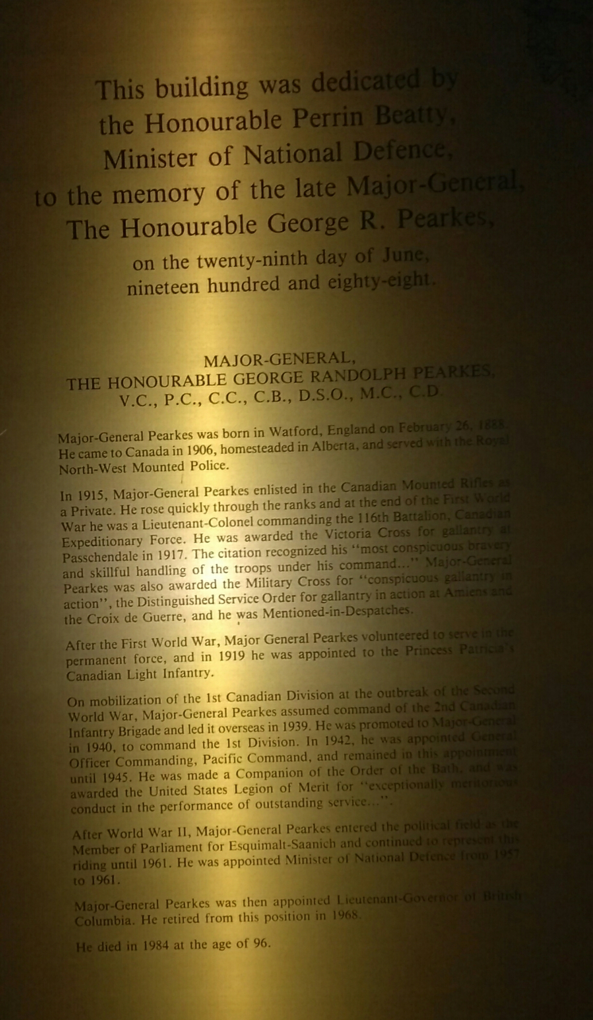 The main building housing National Defence Headquarters in Ottawa is named in honour of Major-General George R. Pearkes.