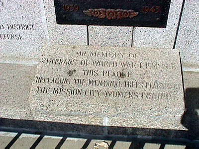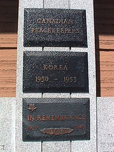 This memorial to local veterans and war dead of the First and Second World War and the Korean War as well as Canadian Peacekeepers was erected by the Royal Canadian Legion.