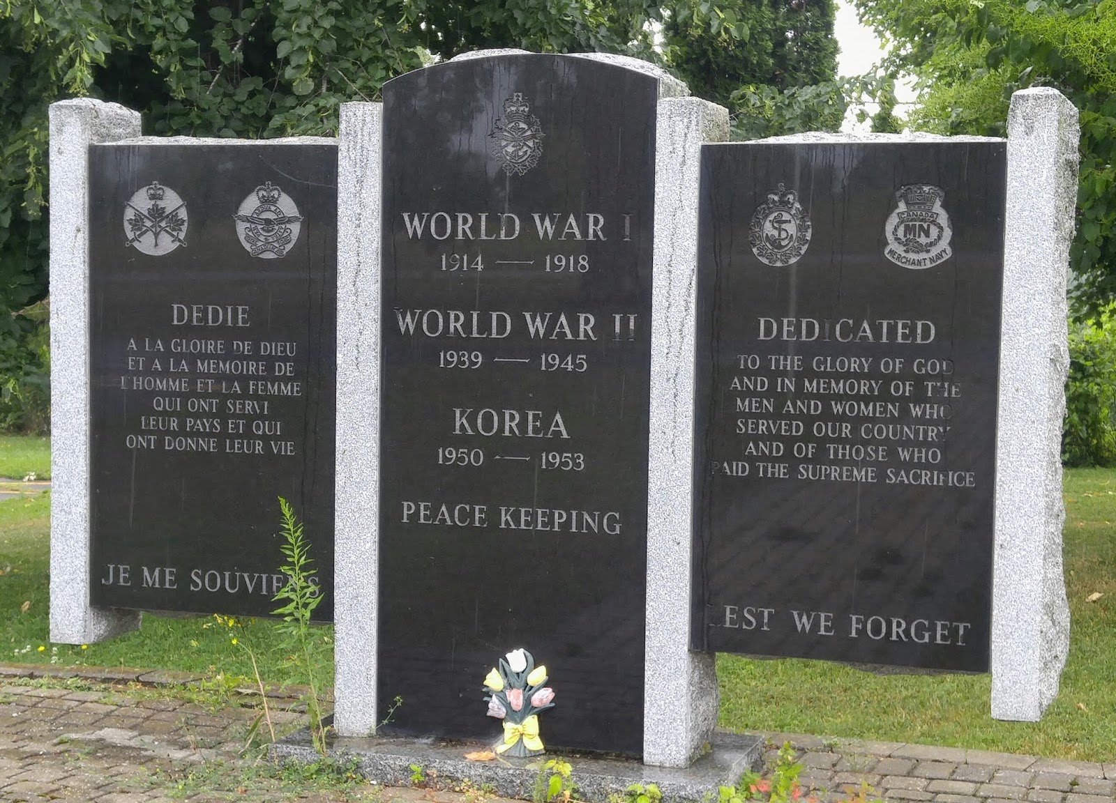 This memorial honours all those who served in the Navy, Army, Air Force and Merchant Marine during the First and Second World Wars, the Korean War and Peacekeeping. It is placed between the Moose Creek Medical Centre and the Fire Hall. Construction began on August 10, 1995 and it was dedicated on October 28, 1995. As it was the fiftieth anniversary of the end of the Second World War, it was felt to be the right time for such a project.