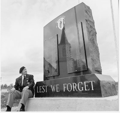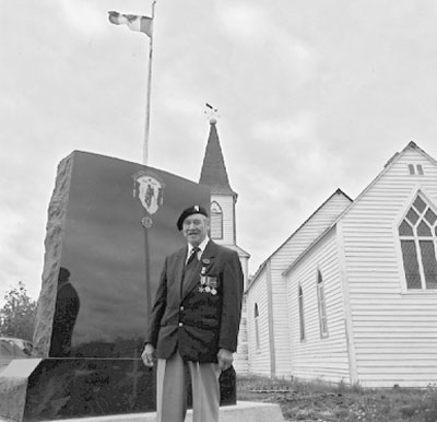 This memorial is dedicated to the memory of all First and Second World War veterans born and / or raised in the James Bay area. It was erected October 3, 1999. The monument is 6 feet high, 4 feet wide and 16 inches in depth.