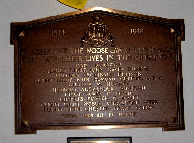 IN MEMORY OF THE MOOSE JAW COLLEGE MEN WHO GAVE THEIR LIVES IN THE GREAT WAR