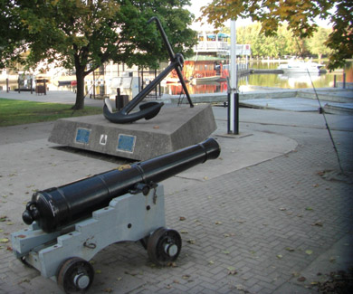 As part of the celebrations, a large anchor was selected from a Halifax shipyard and sent by rail to be emplaced adjacent to HMCS Carleton, Ottawa’s naval reserve unit. The monument was installed by the Thomas Fuller Construction company, operated by retired Royal Canadian Naval Volunteer Reserve member Captain Thomas Fuller (1908-1994), a decorated Second World War naval hero who also served as commanding officer of HMCS Carleton from 1948-1951.