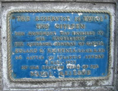 On May 6, 1973, in unison with Battle of the Atlantic Sunday, the National Naval Reserve Monument was unveiled by Governor General Roland Michener in a ceremony with the ship’s company of HMCS Carleton. A plaque on the monument echoes the words of Winston Churchill that “The reservist is twice the citizen,” a reminder of the dual identity of Naval Reservists.