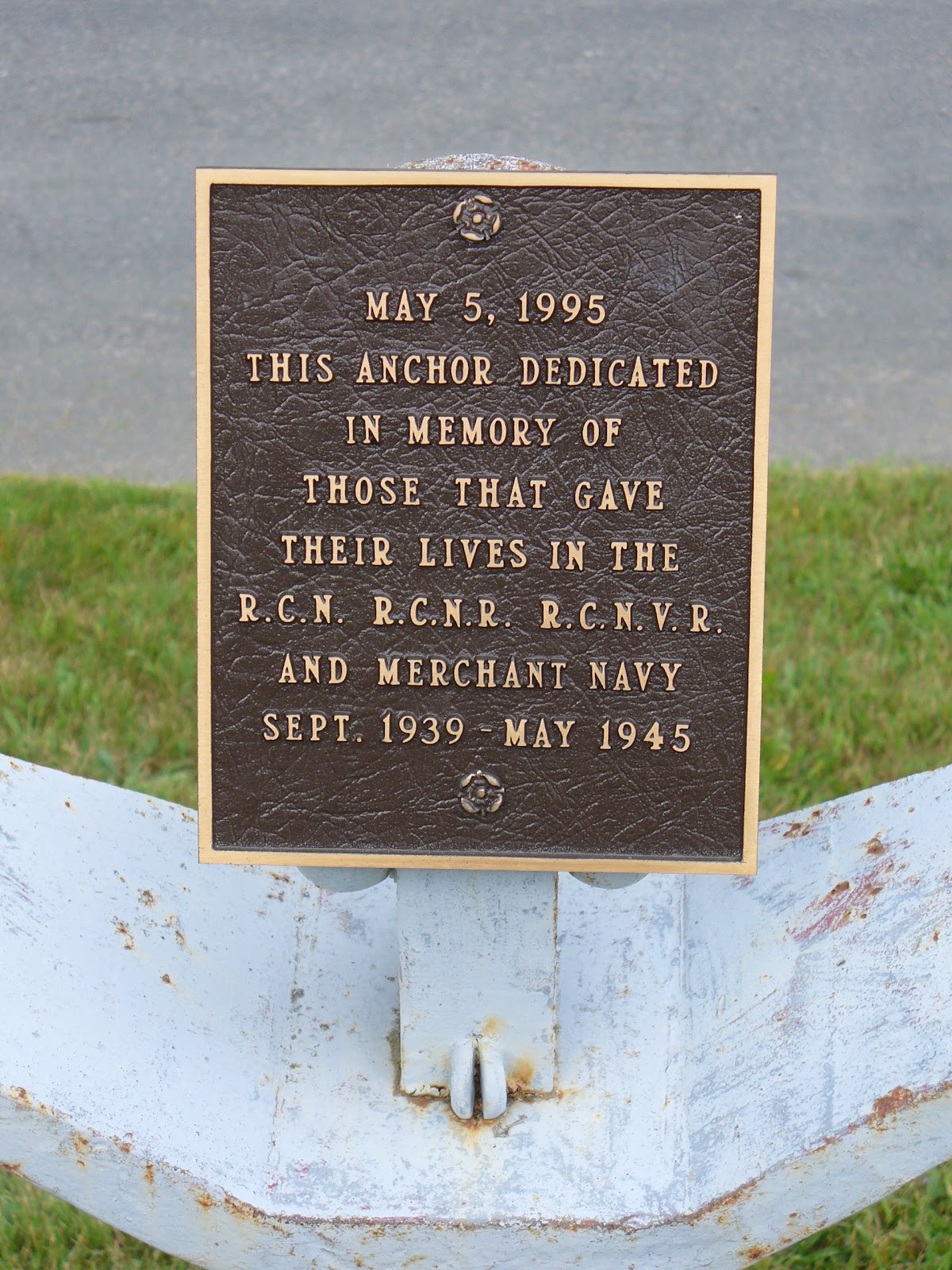 On May 5, 1995, this anchor was dedicated in memory of those that gave their lives in the Second World War while serving in the Royal Canadian Navy, Royal Canadian Navy Reserve, Royal Canadian Navy Volunteer Reserve and the Merchant Navy.