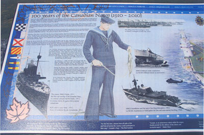 This memorial was erected by the Canada Lands Company, and unveiled on June 6th, 2010. This memorial is dedicated to the men and women who served in the Navy over the past 100 years. This story boards include the history of 100 years of the Canadian Navy - (1910-2010).