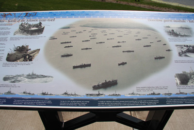 This memorial was erected by the Canada Lands Company, and unveiled on June 6th, 2010. This memorial is dedicated to the men and women who served in the Navy during "The Battle of the Atlantic". The story board include the history of the Second World War and the Battle of The Atlantic (1939 -1945).
