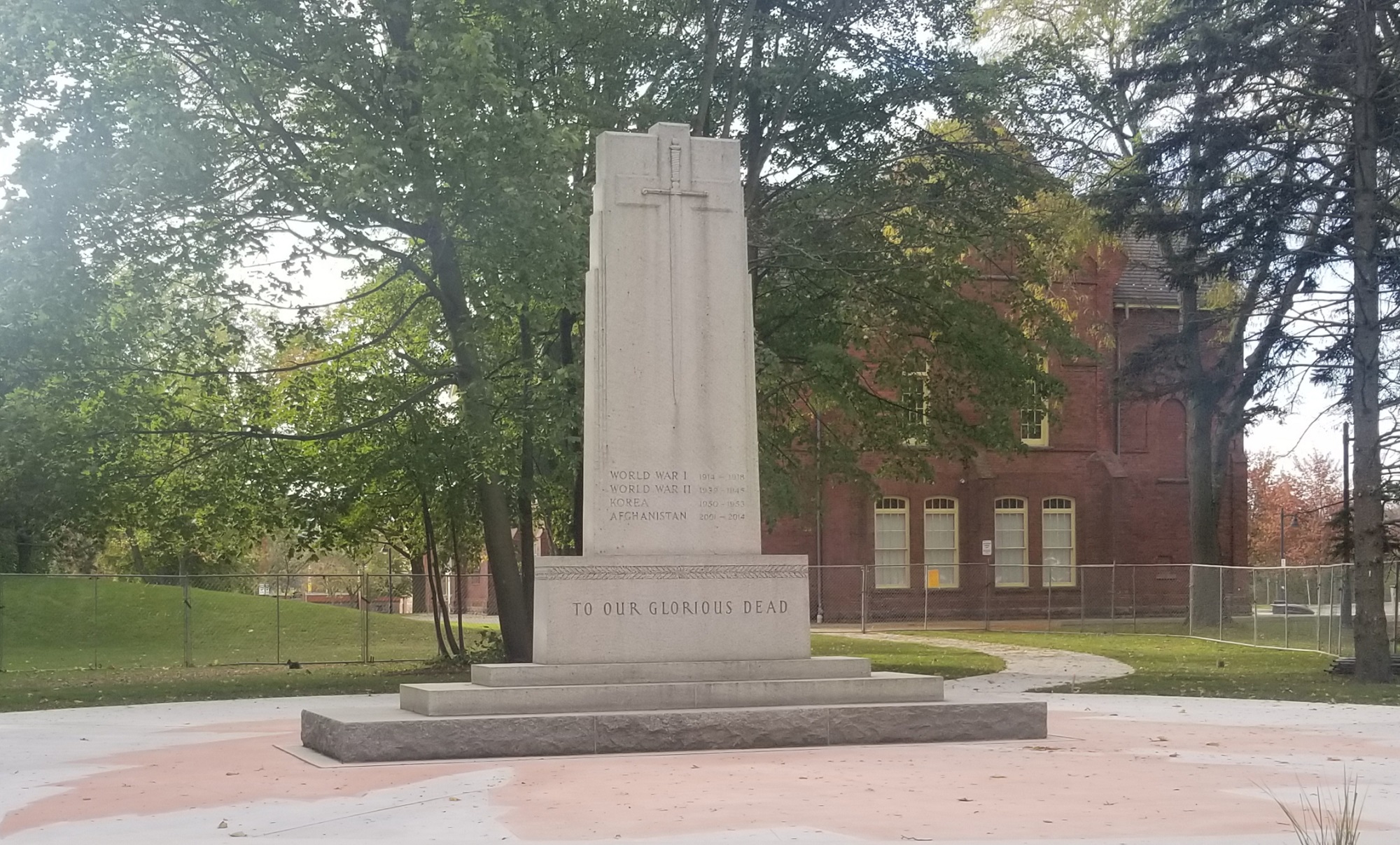 The New Toronto Cenotaph, a 7.5 meter granite memorial, was donated by the community and located at Mimico Town Hall at 185 Fifth Street. In 1983, it was relocated to 150 Eighth Street, Royal Canadian Legion Branch 3. When the legion property was sold in October 2020, the cenotaph was relocated to its current location in Colonel Samuel Smith Park. Petrogold Inc. bought the legion property and, understanding the importance of the cenotaph to the community, not only worked with the legion to move it, but paid for its relocation.