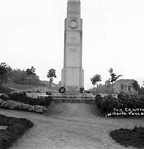 The North Vancouver Cenotaph, located in Victoria Park, was constructed in 1923 in memory of the citizens of the City and the District of North Vancouver who gave their lives during the First World War. The monument was later rededicated to commemorate the fallen of the Boer War, the Second World War, the Korean War and various peacekeeping missions around the world. The Cenotaph was designed by Blackadder and MacKay, Architects, and erected by the British Columbia Monumental Works of Vancouver. (Henry Blackadder was a resident of North Vancouver and served during the First World War.) The 1995 Cenotaph Enhancement Project upgraded the surrounding area of Victoria Park with new memorial markers, a commemorative lawn, extended walkways, lighting, a drinking fountain, floral plantings and additional benches.