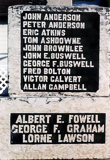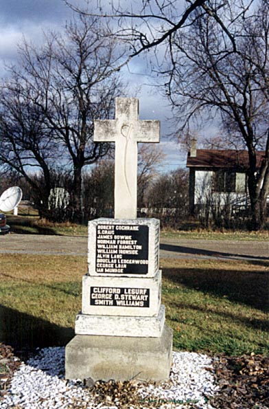 This memorial was erected in 1923 in memory of the local war dead of the First World War. Originally located in the Oak Lake Cemetery, the memorial was relocated to a municipal park and a second level added to incorporate the local war dead of the Second World War.
