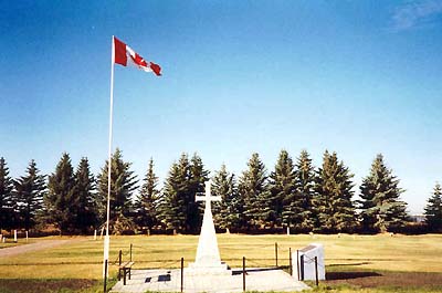 The Cross of Sacrifice was erected on July 1, 1998 in the Olds Cemetery Field of Honour. It was constructed in memory of those who served their country in war and peace. The dedication ceremony, in conjunction with decoration day, was held on July 1, 1998. The Royal Canadian Legion, Branch No. 105, Olds, will be responsible for the upkeep and maintenance of the monument and site. This Cross of Sacrifice was unveiled on July 1, 1998 by His Worship, Mr. Alan Taylor, Mayor of Olds, assisted by a representative of the Alberta Legislature, the Mountain View County and Comrade Roger Kilpatrick, President, Royal Canadian Legion, Branch No. 105, Olds. This Memorial was erected by the Olds Branch No. 105, Royal Canadian Legion in cooperation with the Town of Olds and donations from the following organizations: Veterans Fields of Honour (1975), Ladies' Auxiliary Branch of the Royal Canadian Legion, Branch No. 105, Kiwanis Club of Olds, Olds Elks Lodge No. 100, Baron Tweedsmuir Chapter I.O.D.E., Olds Lions Club and individual citizens. Field of Honour Committee: Bert A. Sharp - Chairman William Elliot - Member John M. Melville - Member