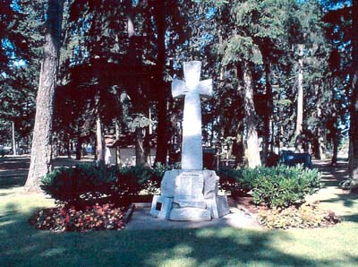 The Parksville Cenotaph is located at the Parksville Community Park, it was constructed in 1922-1923. It was built in memory of veterans from Parksville and area who served in the First and Second World Wars. The memorial was purchased from money raised by the Women’s Institute. The three tons of granite were brought from Nelson Island and carved by Bill Wheeler with the help of W. Bryce. The original site was on Memorial Avenue. The Women’s Institute also donated trees to border both sides of Memorial Avenue. However, due to traffic congestion it was decided to move the monument. The new location was a piece of land donated on Sutherland Drive. Memorial Park was created with grass and seed donated by Buckerfield and trees provided by B.C. Forest Service. The memorial was rededicated on 11 June 1967. It was during this move that it is believed the monument was separated from its original base. Due to traffic congestion the monument was moved again to the Parksville Community Park on 23 October 1976. The monument was moved once again to its current location, the plaza outside the Parksville Civic and Technology Centre complete with its original base, which was located by Don Levirs a local resident. It was rededicated on 11 November 2001.
