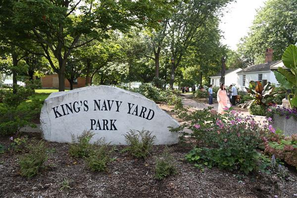 King's Navy Yard Park was designated as a Bi-Centennial International Peace Garden. A large stone marks the entrance of the park, which remains to remember the past of the Navy Yard. This 10.5 Acre park overlooks the waterfront and is lined with beautiful flower arrangements, as well as statues and plaques commemorating the short, but important history of the Naval Yard. Along the pathway are many manicured annual flower beds, a ships anchor, cannons, and a light house beacon. It has been acknowledged as part of the great Sauk Trail which ran from Illinois to Detroit. Once a shipyard for the Provincial Marine, today you can take a stroll along the water, watch the ocean and lake freighters pass by or snap a photo of the colourful Rhododendron’s and lovely gardens. The park hosts reenactments of the battle to keep the history of the War of 1812 alive.