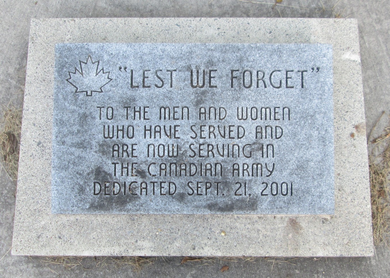 The Picton Canadian Army Memoriali s dedicated to the men and women who have served and are now serving in the Canadian Army. It was unveiled on September 21, 2001, by the Royal Canadian Legion Branch 78.