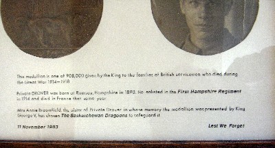 Private DROVER was born at Ramsay, Hampshire in 1890. He enlisted in the First Hampshire Regiment