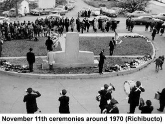 This memorial is dedicated to the war dead of Kent County. Richibucto is the Shiretown of Kent County. The Legion was in the process of having a Cenotaph built but was short of funds. The County Councillors were attending a meeting, and the Legion served them a dinner. The President informed the councillors of their plans to erect a Cenotaph and of their shortage of funds. During the meeting session the next day, they voted unanimously in favour of providing the additional funds. That is why the main Remembrance Day ceremonies are held at the Richibucto Cenotaph. Funding for maintenance is provided by the Town of Richibucto.