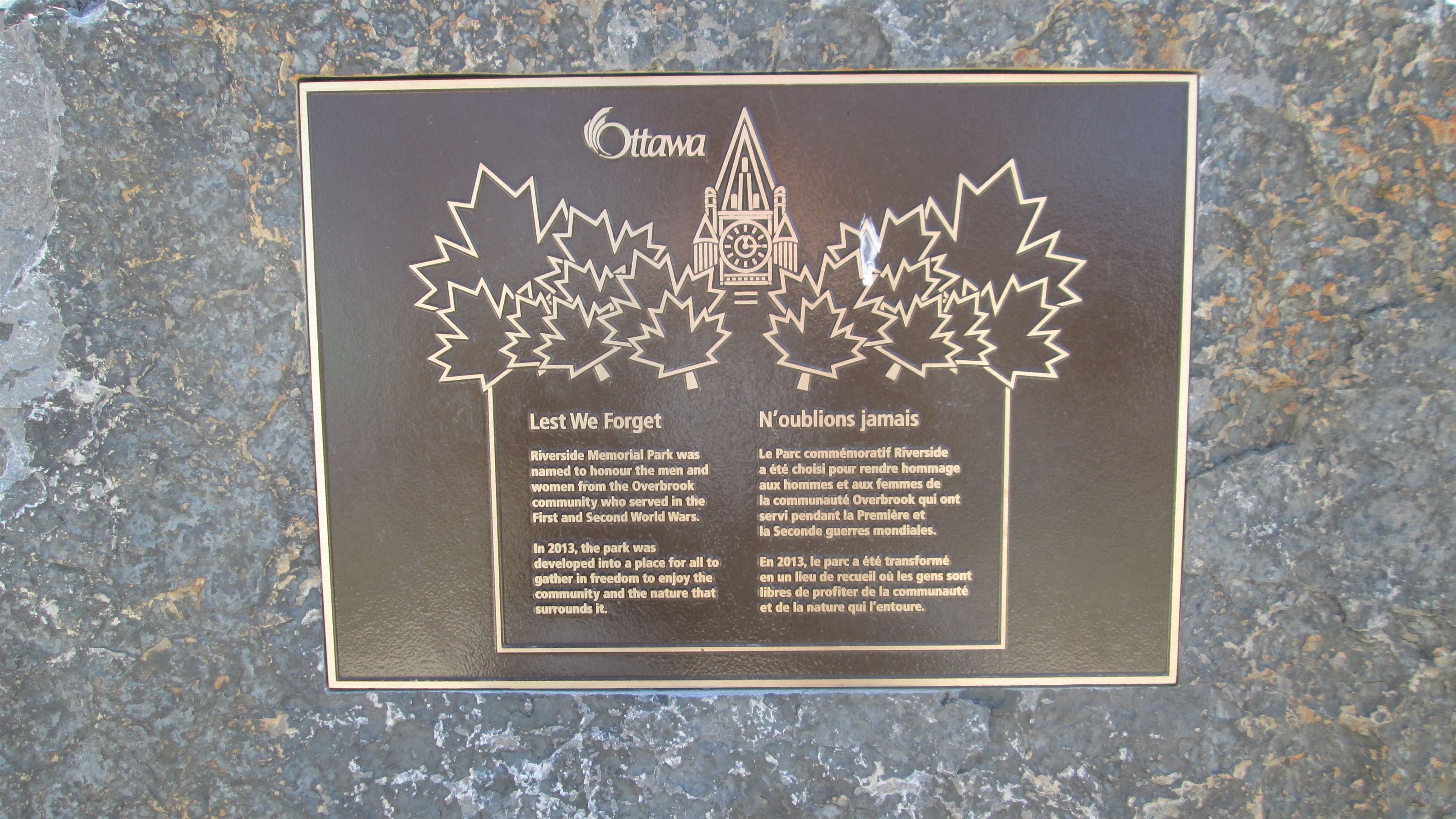 Riverside Memorial Park was named to honour the men and women from the Overbrook community who served in the First and Second World Wars.
