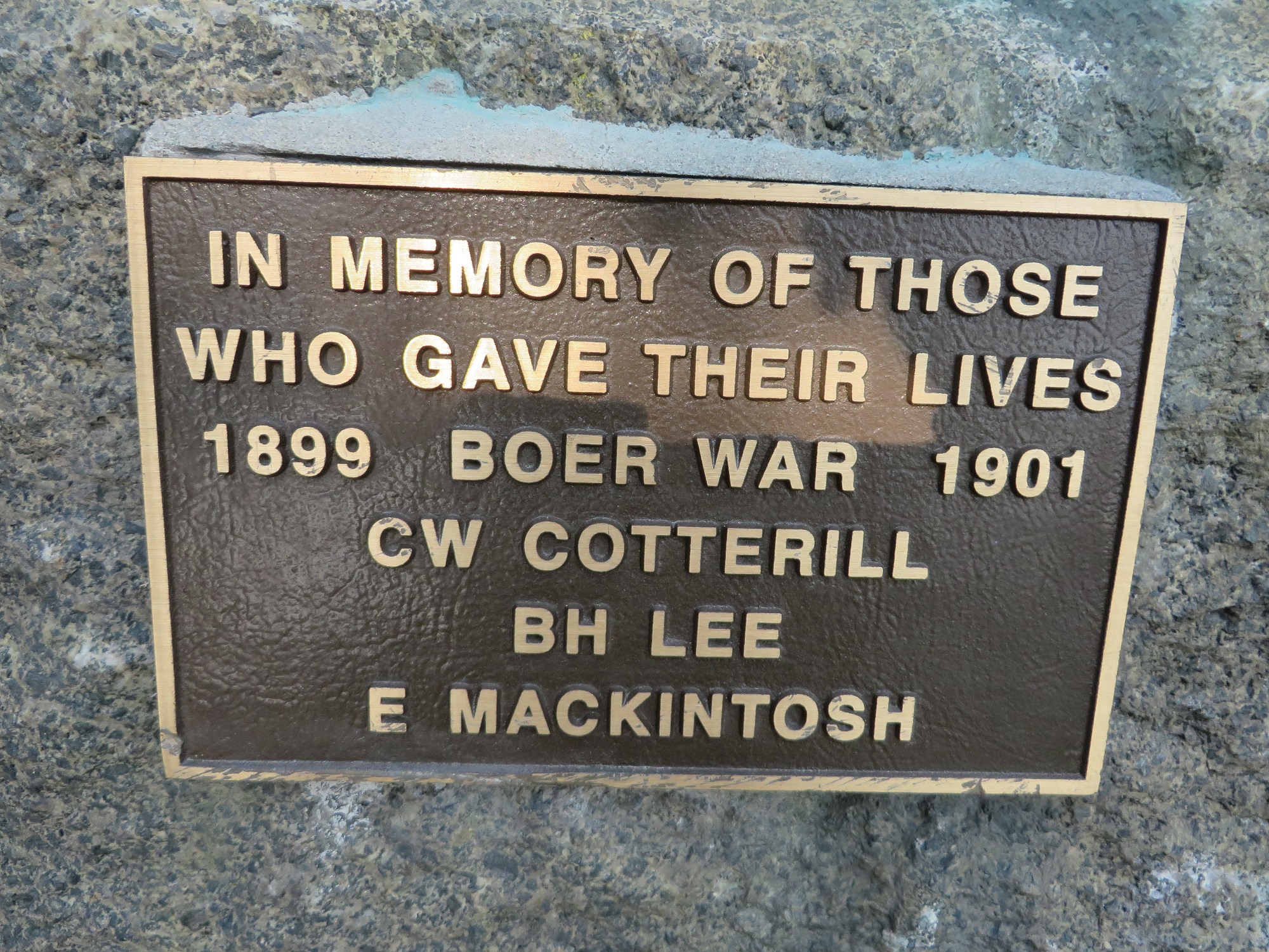 On July 1, 1997, the Royal Canadian Legion Branch 14 rededicated the memorial to those who fought in the Second World War and the Korean War by adding plaques. Those who served during the Boer War were commemorated on the cenotaph with the Legion adding a plaque on September 9, 2000.