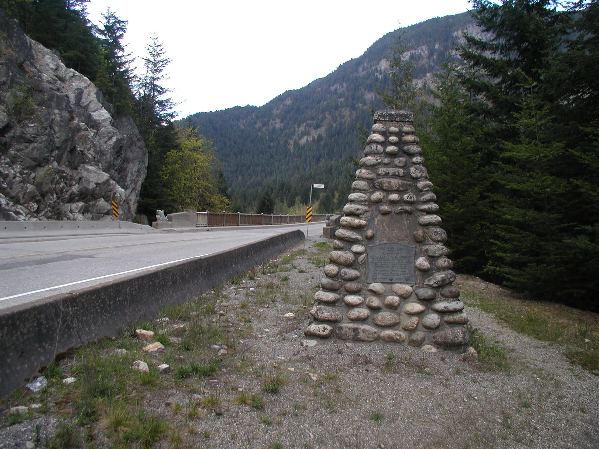 The Royal Engineers Memorial was erected in 1926 by the Engineering Institute of Canada and the Association of Professional Engineers of BC in honour of the Royal Engineers who built the original Cariboo Highway. The original plaque was stolen, and the Ministry of Transportation fabricated and installed a replacement plaque.