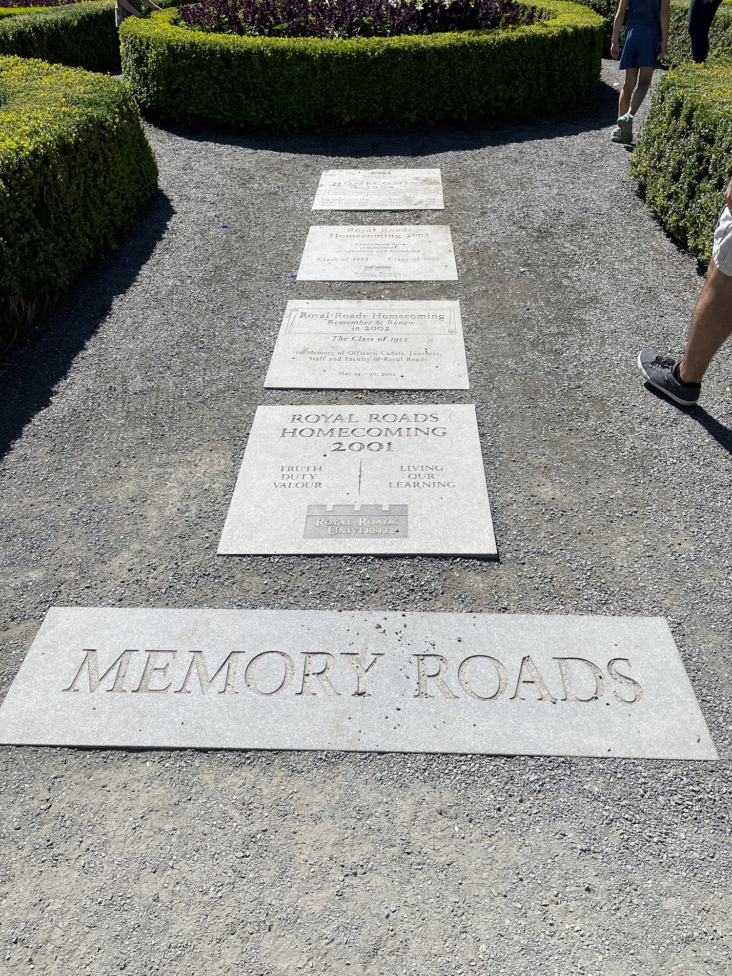 Since 2001, each year during homecoming, memorial stones are placed along a path between Hatley Castle and the Grant Building commemorating the history of the colleges.