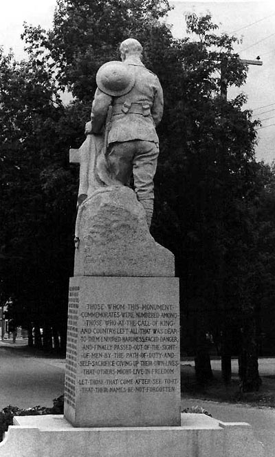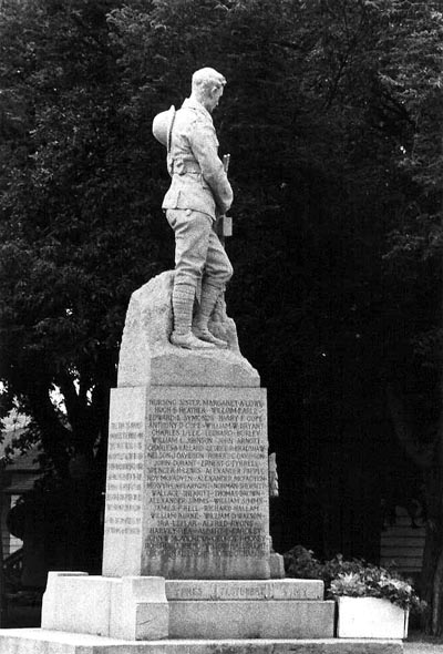 In 1912 Hahn began an association with the Thomson Monument Company of Toronto. It was there, along with several assistants, he made the many war memorials that are found across Canada: Fernie, British Columbia; Killarney and Russell, Manitoba; Alvinston, BoltonCornwall, Hanover, Lindsay Malvern, Milton, Petrolia and Port Dalhousie, Ontario; Gaspe, Quebec; Moncton, New Brunswick; Springhill and Westville Nova ScotiaSummerside, Prince Edward Island.