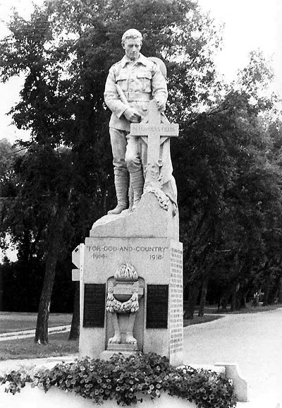 The Russell Cenotaph was unveiled at a ceremony on June 22, 1922, in the presence of approximately 2,000 people from the surrounding district. It was erected by local Veterans in memory of the 83 men from the Town of Russell, Village of Binscarth and the Rural Municipalities of Boulton, Russell, Silver Creek and Shellmouth, who laid down their lives in the Great War.
